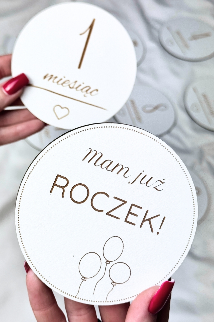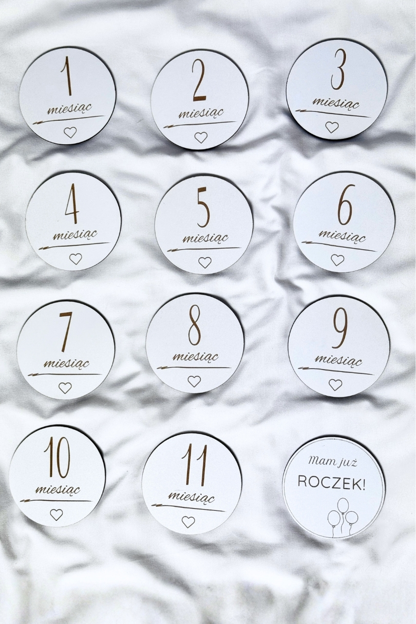 Białe pamiątkowe tabliczki z miesiącami są grube, solidne i niezwykle trwałe – dzięki temu będą wspaniałą pamiątką na lata. Każdy element jest wypalany laserowo, co gwarantuje precyzję detalu i wysoką estetykę. Wersje białe oraz naturalne drewniane pozwalają dopasować zestaw do wybranej estetyki zdjęć.