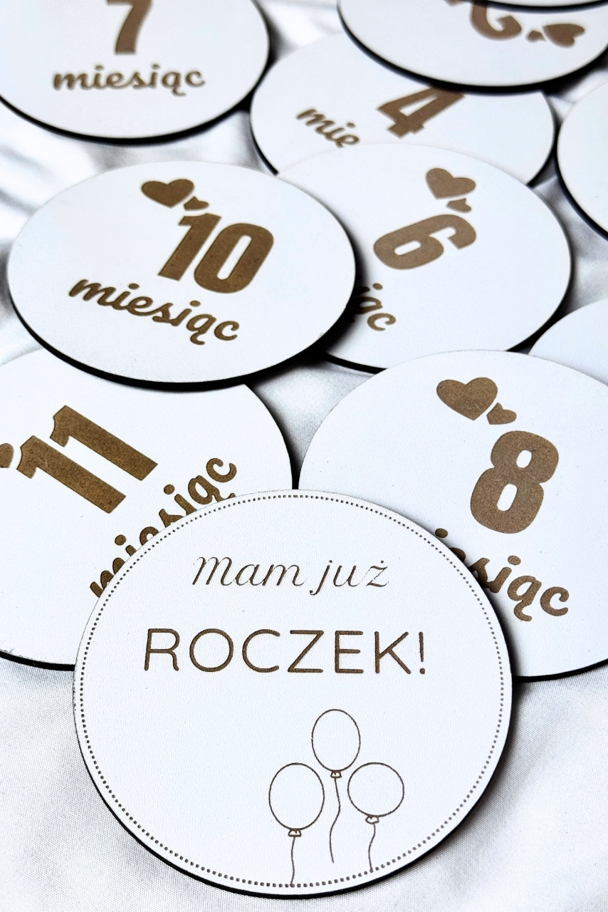 Białe tabliczki do zdjęć niemowlaka są grube, solidne i niezwykle trwałe – dzięki temu będą wspaniałą pamiątką na lata. Każdy element jest wypalany laserowo, co gwarantuje precyzję detalu i wysoką estetykę. Wersje białe oraz naturalne drewniane pozwalają dopasować zestaw do wybranej estetyki zdjęć.