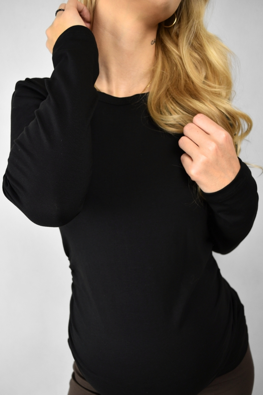 Czarna bluzka ciążowa z długim rękawem marszczona
