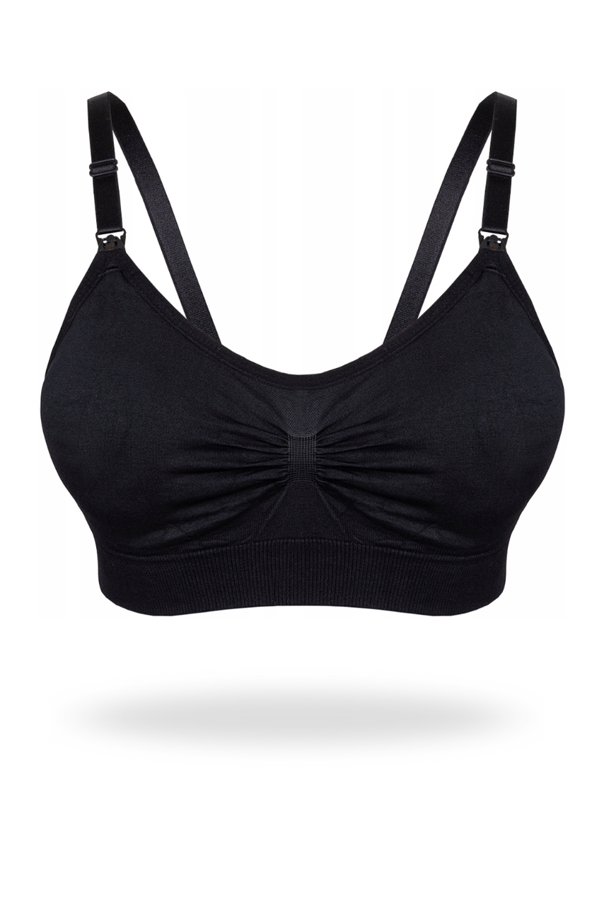 Czarny sportowy biustonosz do karmienia z marszczeniem