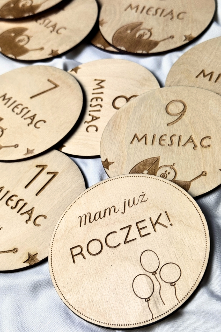 Drewniane tabliczki do zdjęć z miesiącami są grube, solidne i niezwykle trwałe – dzięki temu będą wspaniałą pamiątką na lata. Każdy element jest wypalany laserowo, co gwarantuje precyzję detalu i wysoką estetykę. Wersje białe oraz naturalne drewniane pozwalają dopasować zestaw do wybranej estetyki zdjęć.