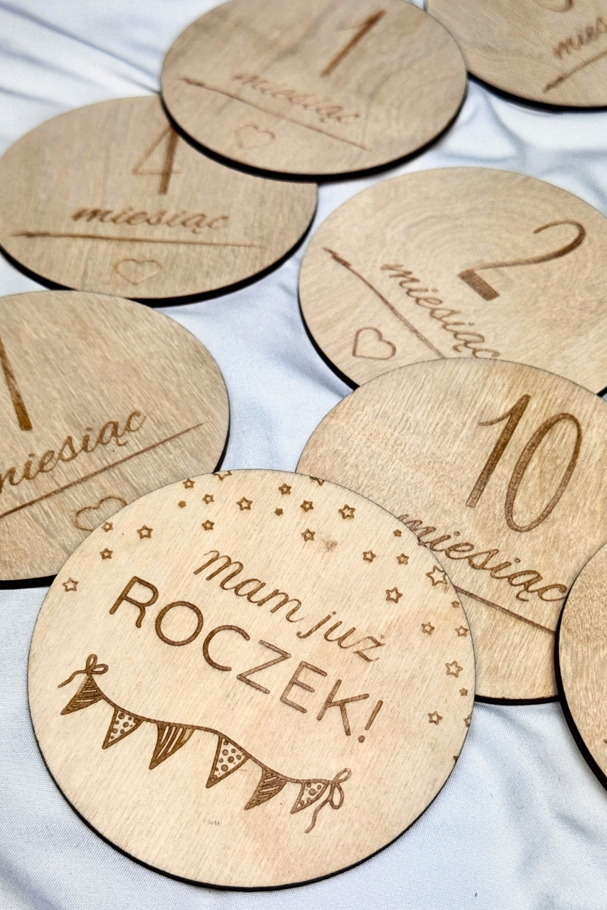 Drewniane pamiątkowe tabliczki z miesiącami są grube, solidne i niezwykle trwałe – dzięki temu będą wspaniałą pamiątką na lata. Każdy element jest wypalany laserowo, co gwarantuje precyzję detalu i wysoką estetykę. Wersje białe oraz naturalne drewniane pozwalają dopasować zestaw do wybranej estetyki zdjęć.