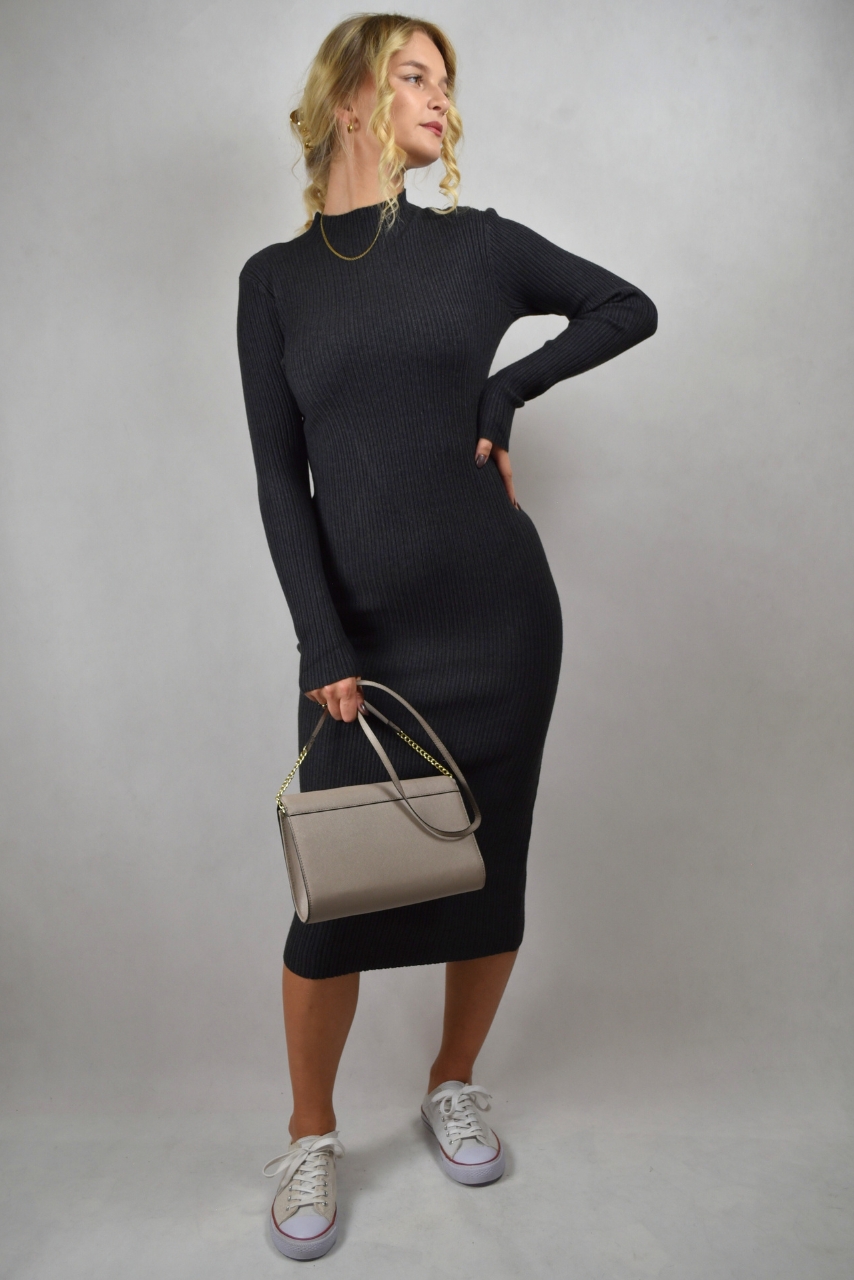 Grafitowa sukienka ciążowa sweterkowa półgolf