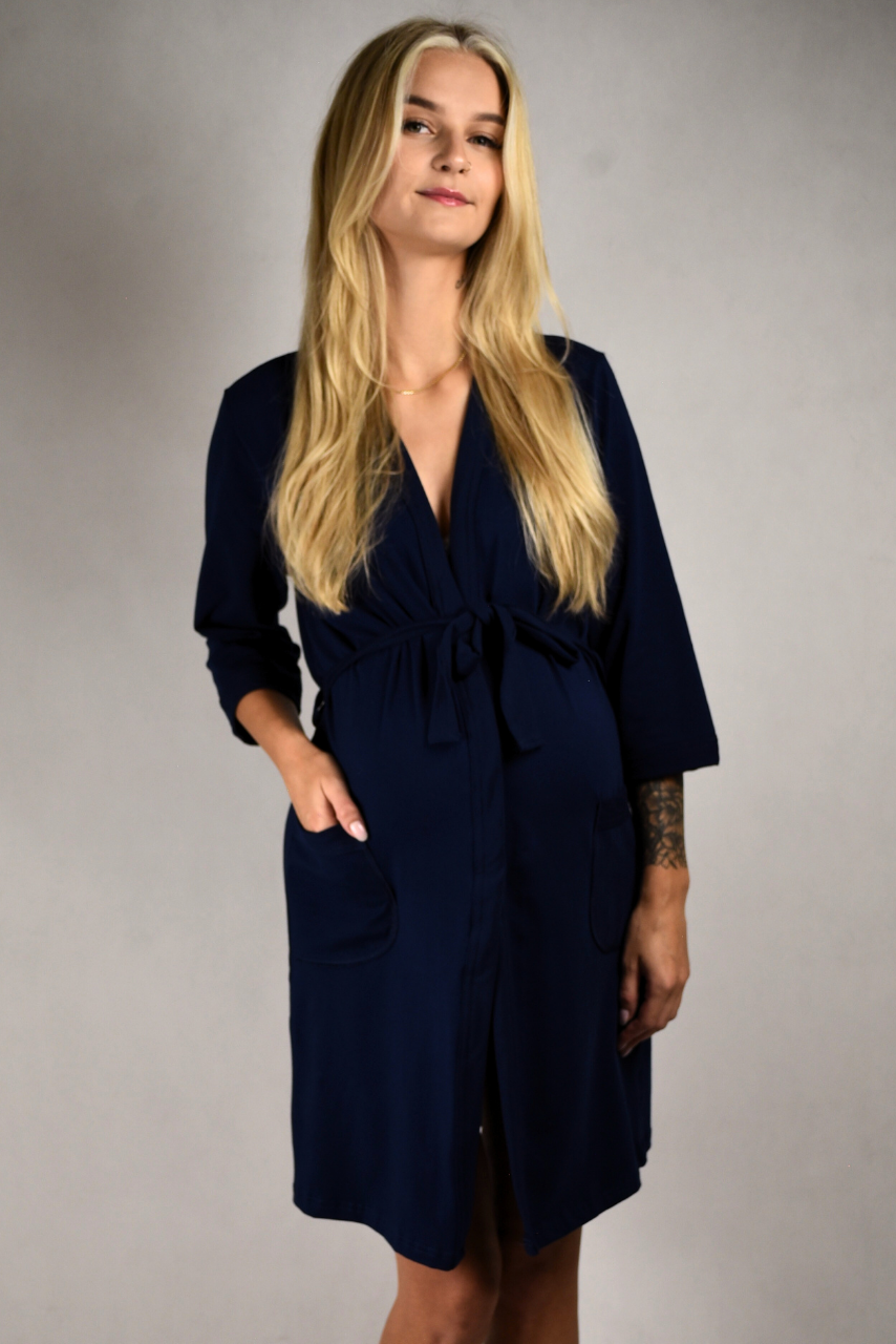 Bawełniany granatowy szlafrok ciążowy do szpitala