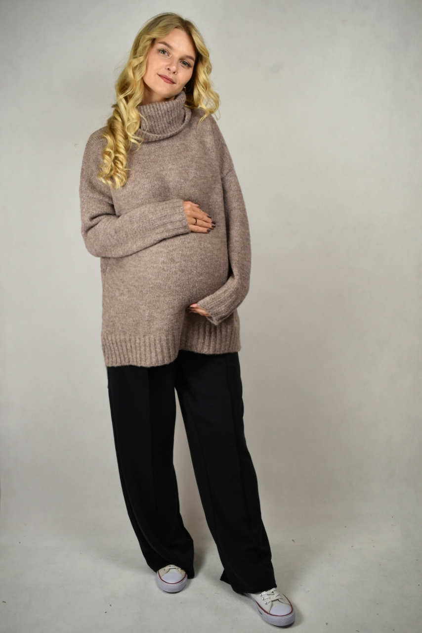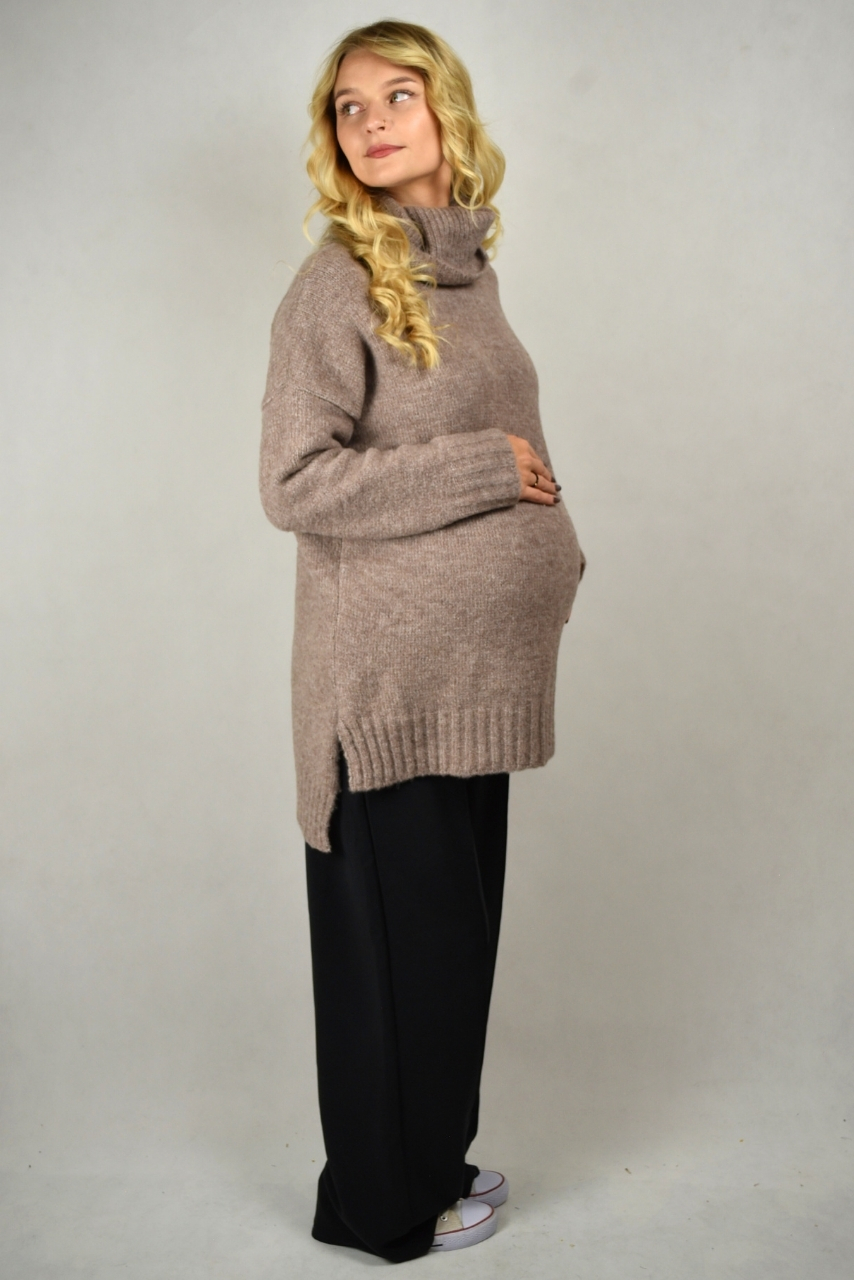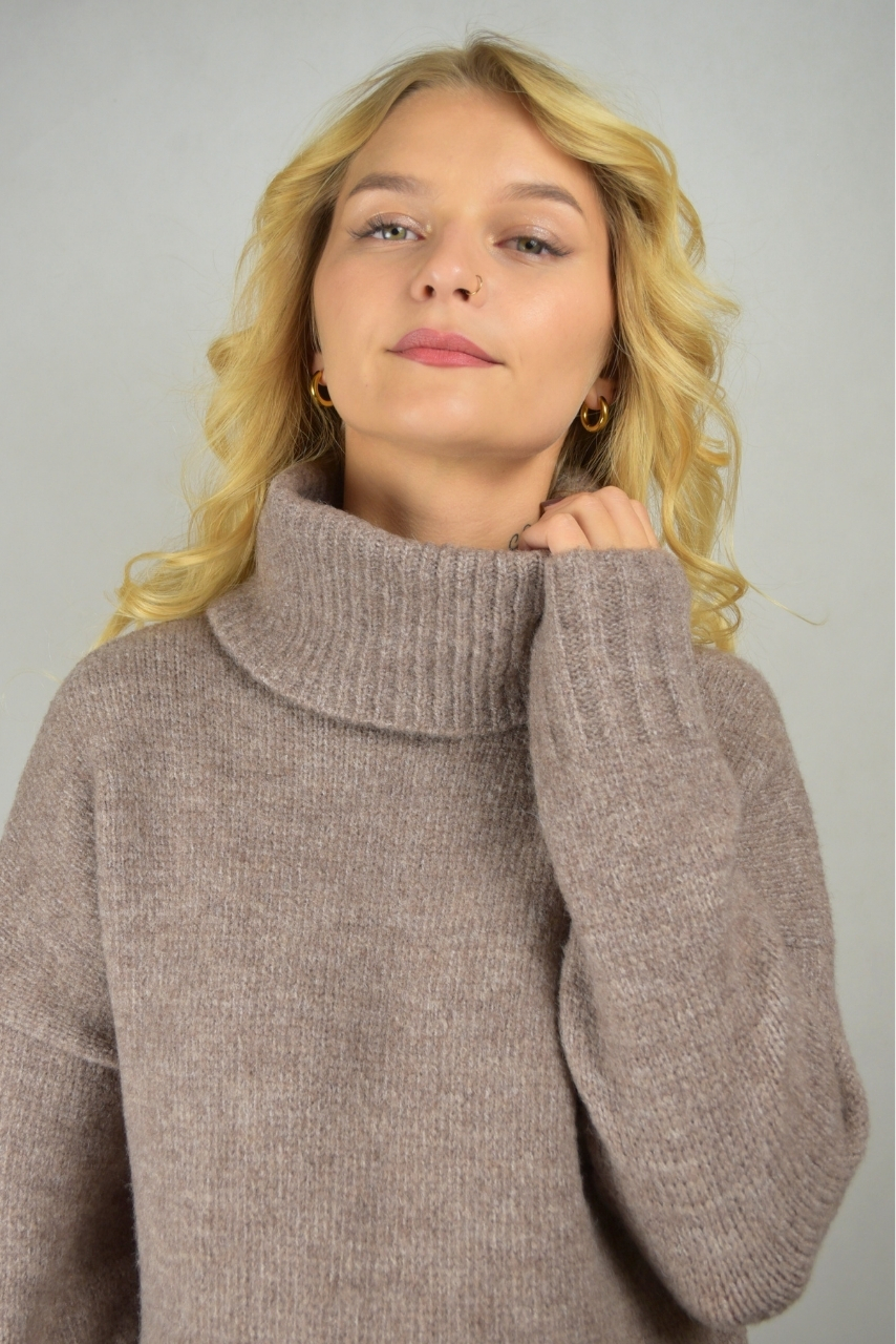 Kawowy sweter z szerokim golfem