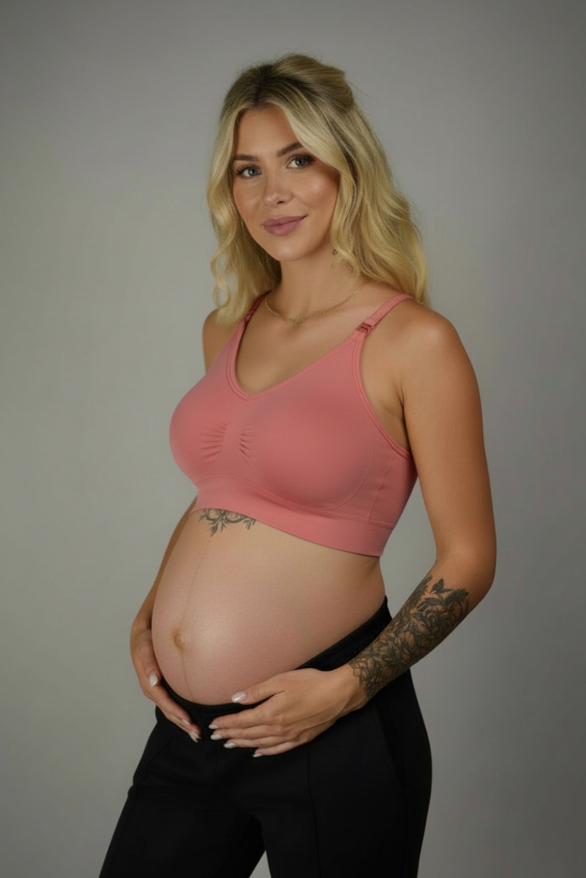 Koralowy sportowy biustonosz do karmienia to żywsza, energetyczna opcja, która od razu poprawia nastrój. Miękka dzianina dopasowuje się do sylwetki, dając wsparcie bez ucisku, a sportowy fason gwarantuje swobodę ruchów. Odpinane miseczki sprawiają, że karmienie przebiega wygodnie i bez stresu. Intensywny koralowy kolor nadaje całości charakteru i świeżości — Koralowy sportowy biustonosz do karmienia to idealny wybór dla mam, które chcą połączyć funkcjonalność z odrobiną koloru w codziennej garderobie.