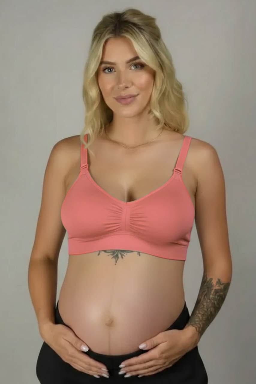 Koralowy sportowy biustonosz do karmienia z marszczeniem