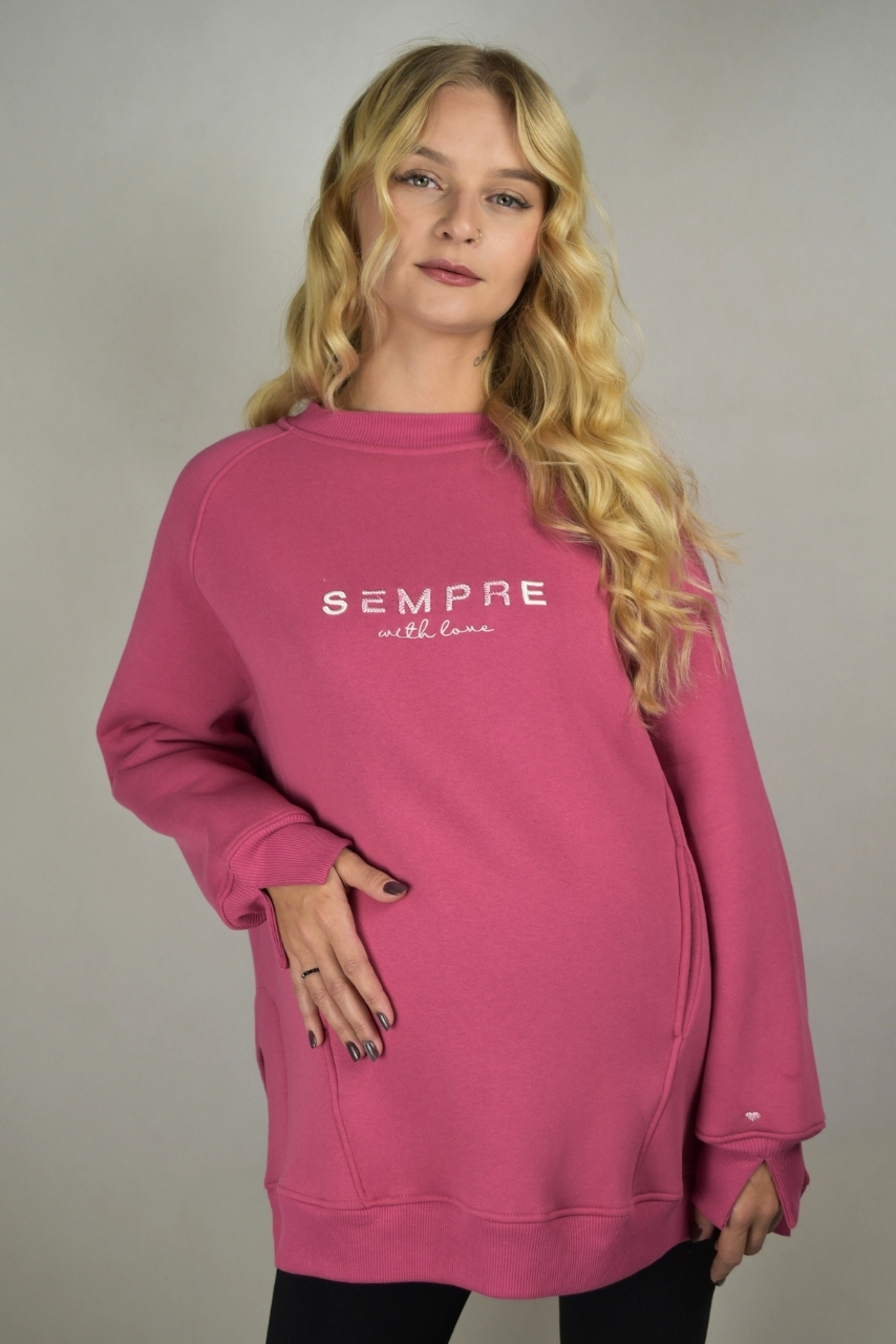 Różowa bluza ciążowa z kieszeniami