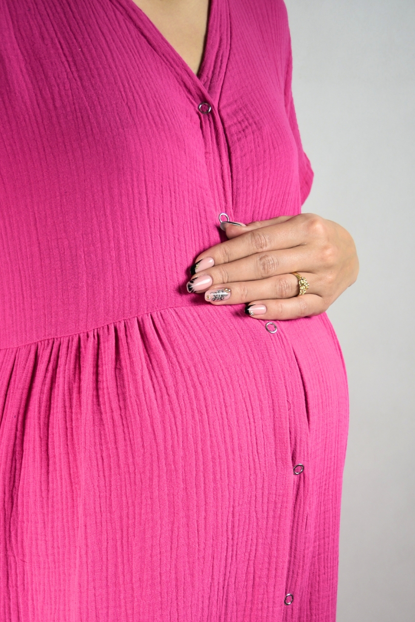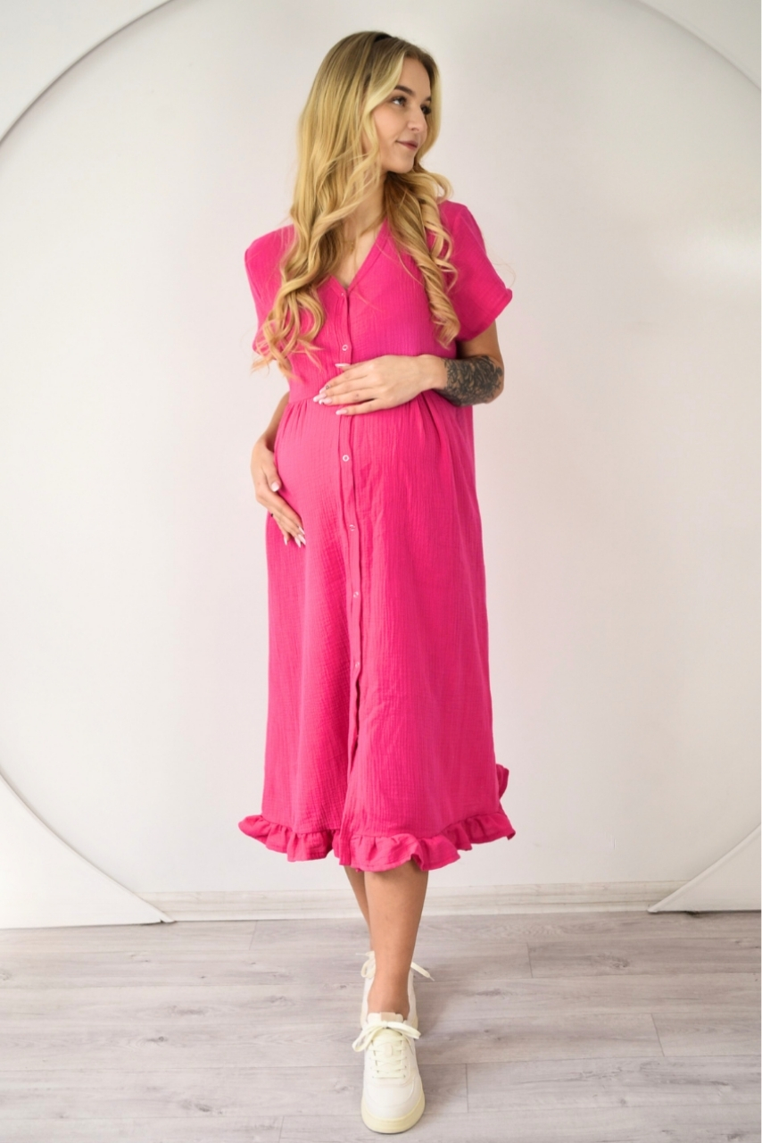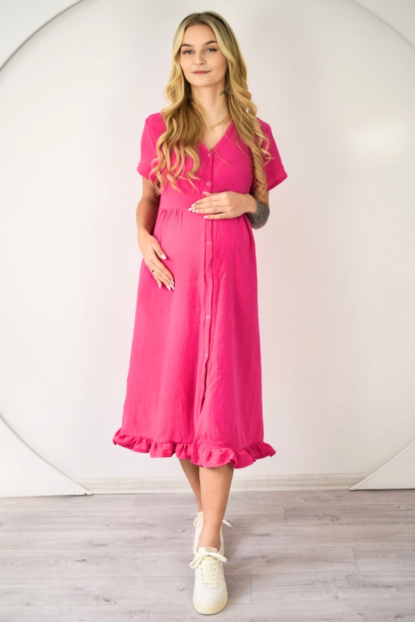 Różowa muślinowa sukienka do karmienia rozpinana na całej długości