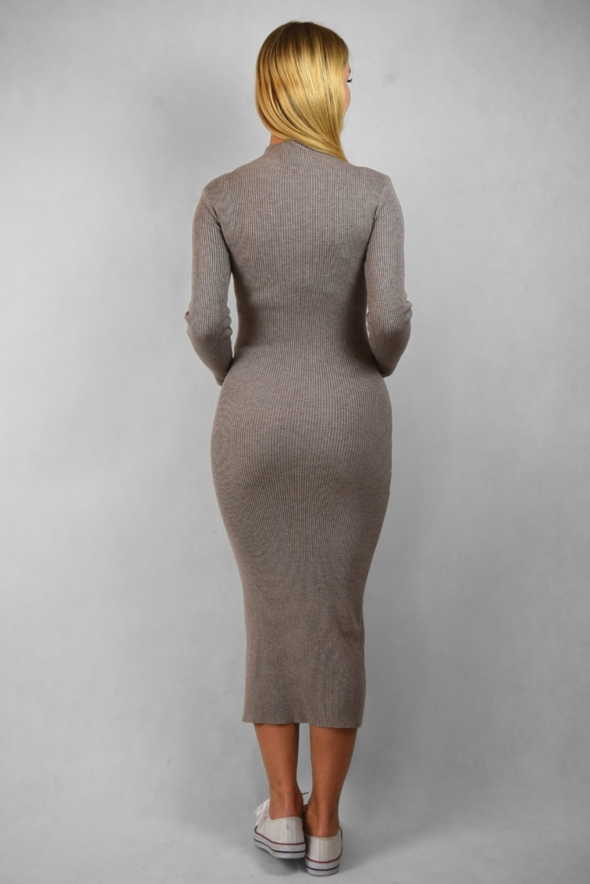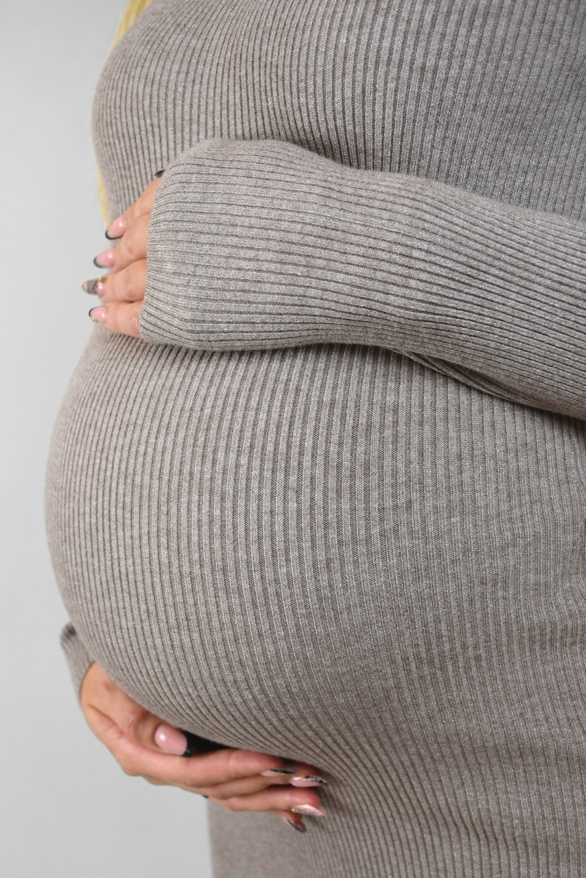 Sukienka sweterkowa ciążowa z rozcięciem beżowa
