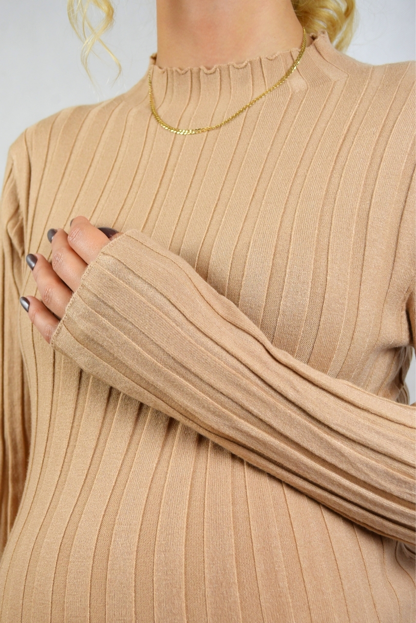 Sweterkowa beżowa sukienka ciążowa midi